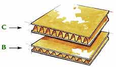 | Different flute profiles can be combined in one piece of combined board. Mixing flute profiles allows us to manipulate the compression strength, cushioning strength and total thickness of the combined board to meet any need. In addition, the medium can be wax impregnated to control moisture within and outside of the container. | |
